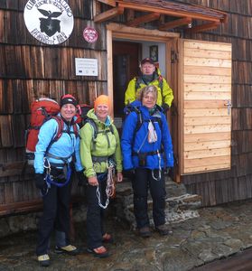 ja auf´s Zucherhütel wollen haben wir die komplette Gletscherausrüstung dabei, zumindest die Sabine (Bild links).