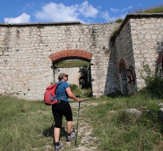 Hier gleich rechts weg, und dann sofort nach der Ortschaft links einen Schotterweg rein. Zwischen Weinbergen bis zum Wegende.