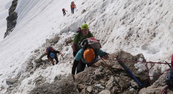 Nach einer Pause auf dem Sattel 2700 m steigen wir zum Hohen Rad auf. Unsere Rucksäcke mit den Seilen und den Steigeisen lassen wir liegen.