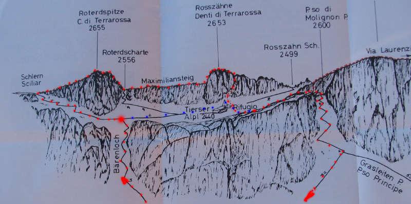 Aber im Rosengarten: König Laurinīs Reich, sind genügend Hütten und die Wege sind nicht weit. So