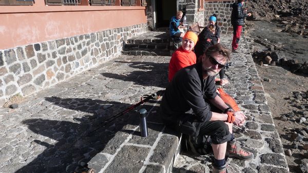 Nach 2 1/2 Stunden Aufstieg erreichen wir um 9.00 Uhr das Rifugio de Altavista 3260 m, hier sitzen ein paar Leute rum,